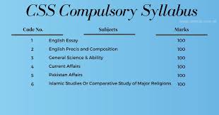- Written Examination: The core of the CSS, consisting of 12 papers (6 compulsory, 6 optional) totaling 1200 marks.